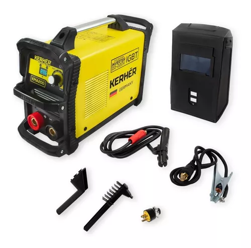 Soldadora inversora KERHER KMA200. Soldadora inverter IGBT 110V/220V para SMAW de uso profesional, con tecnología Alemana, ideal para realizar todo tipo de soldadura de electrodo. Quema todo tipo de electrodos hasta 5/32".