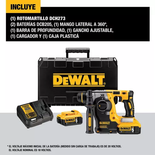 Empuñadura lateral, Limitador de profundidad, Baterías, Cargador de batería, Gancho ajustable, Maletín, Manual