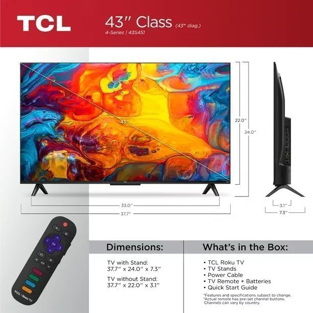 La TV de la serie 4 de TCL ofrece una calidad de imagen 4K impresionante con cuatro veces la resolución de Full HD para una mayor claridad y detalle, así como un sinfín de entretenimiento con miles de canales de transmisión. La tecnología de alto rango dinámico (HDR) ofrece colores brillantes y precisos para una experiencia de visualización realista. Además, sus programas, películas y eventos deportivos HD favoritos se mejoran a una resolución casi Ultra HD con 4K Upscaling. Su transmisión de TV favorita, canales de transmisión, consola de juegos y otros dispositivos están al frente y al centro dentro de una pantalla de inicio simple y personalizable. Ya no es necesario pasar de una entrada a otra ni recorrer menús complicados.