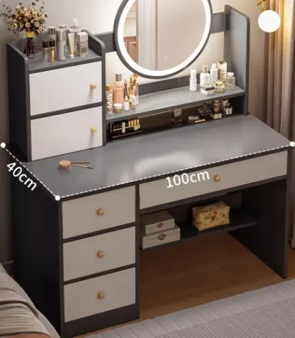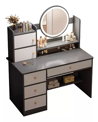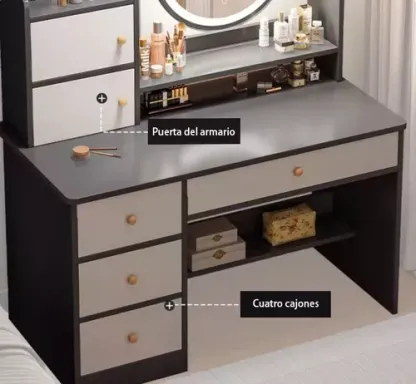 Amplio almacenamiento: Con múltiples cajones y armarios de almacenamiento, ofrece un espacio generoso para organizar cosméticos y accesorios.