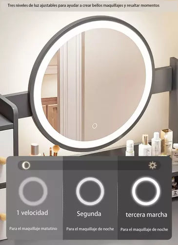 Espejo de gran tamaño: Equipado con un espejo amplio que proporciona una buena visión e iluminación, facilitando el proceso de maquillaje.