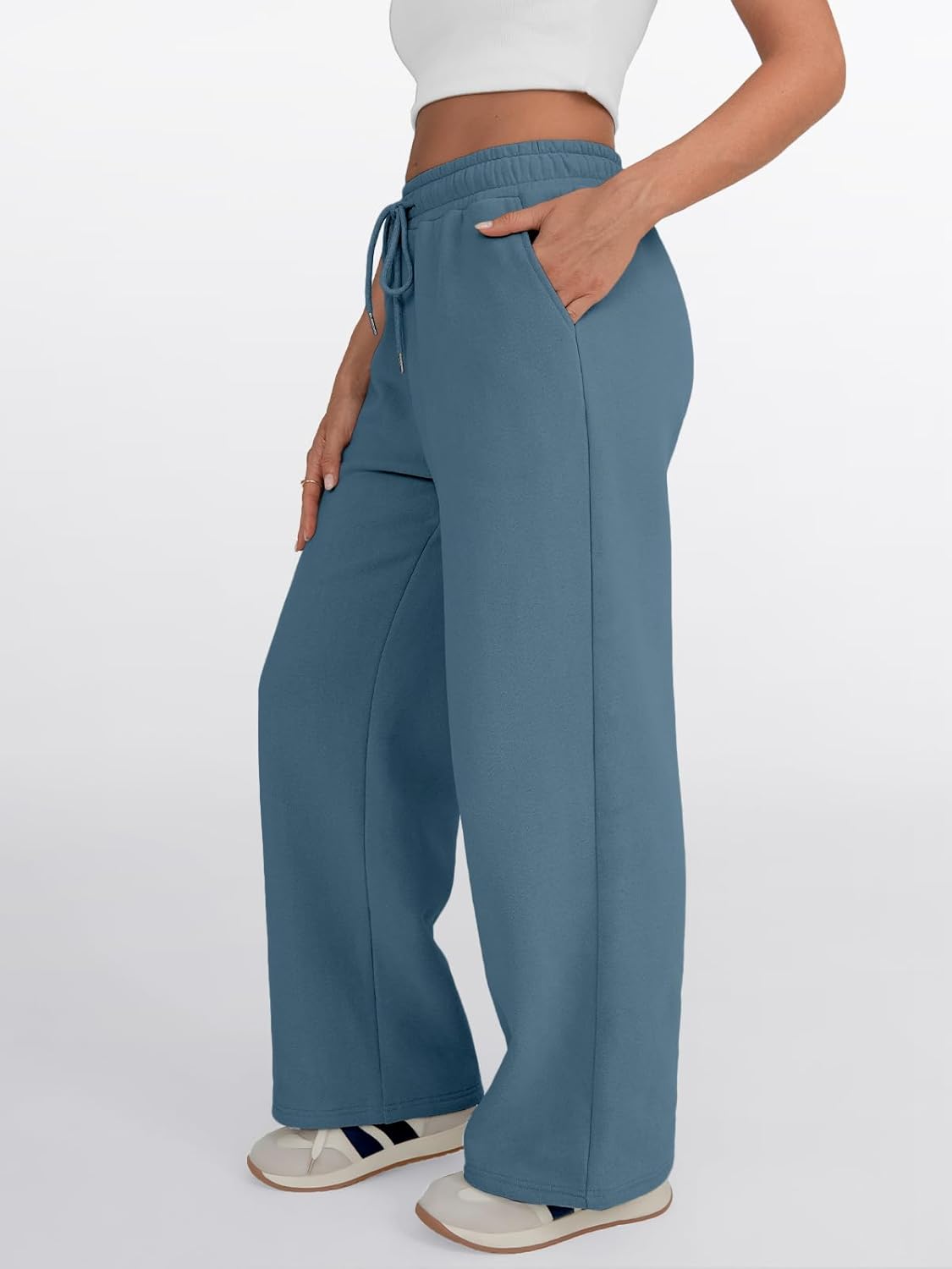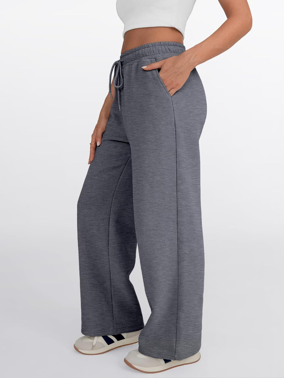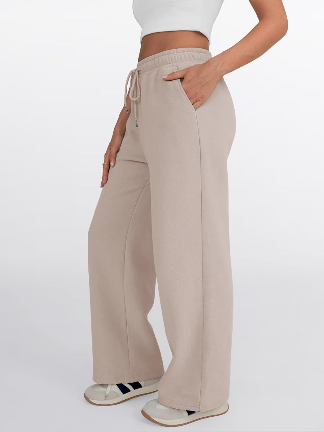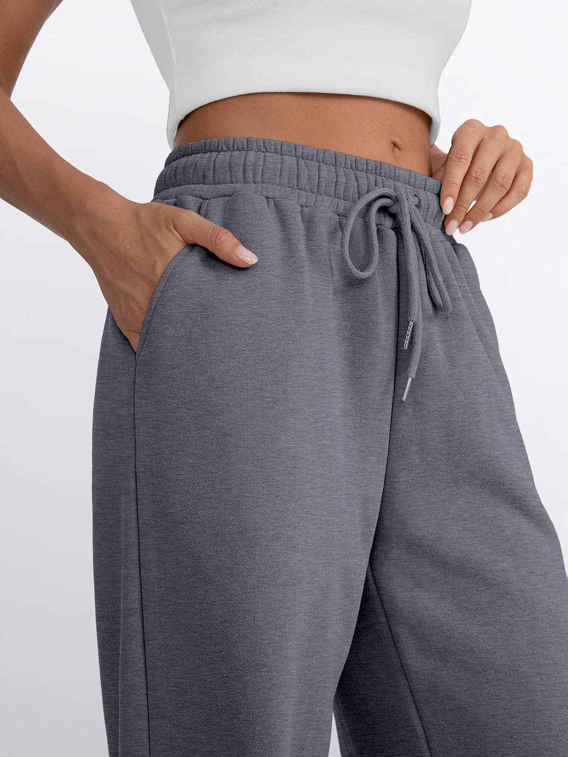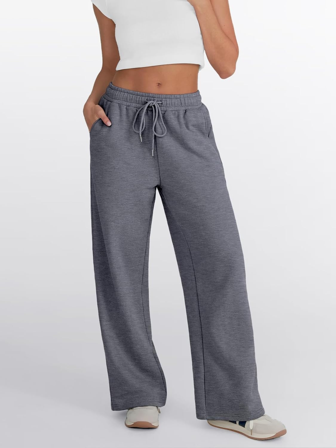 Trendy Queen - Pantalones deportivos de pierna ancha para mujer, pantalones holgados de cintura alta, con cordón, atléticos, acampanados, con bolsillos