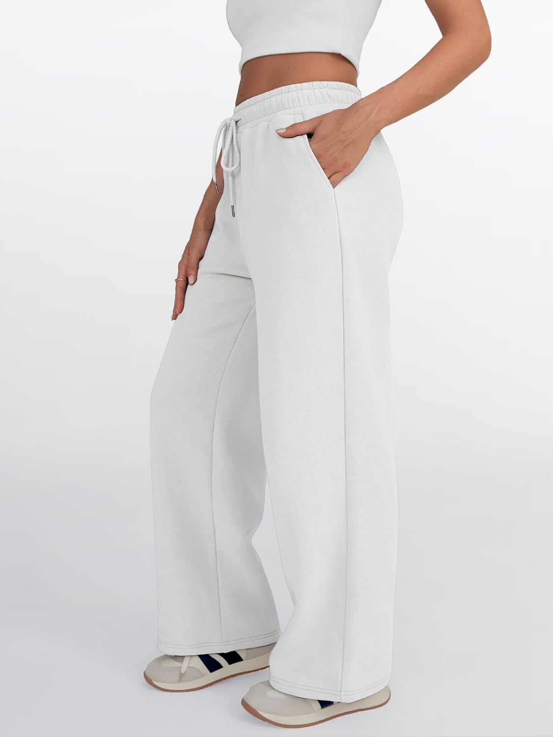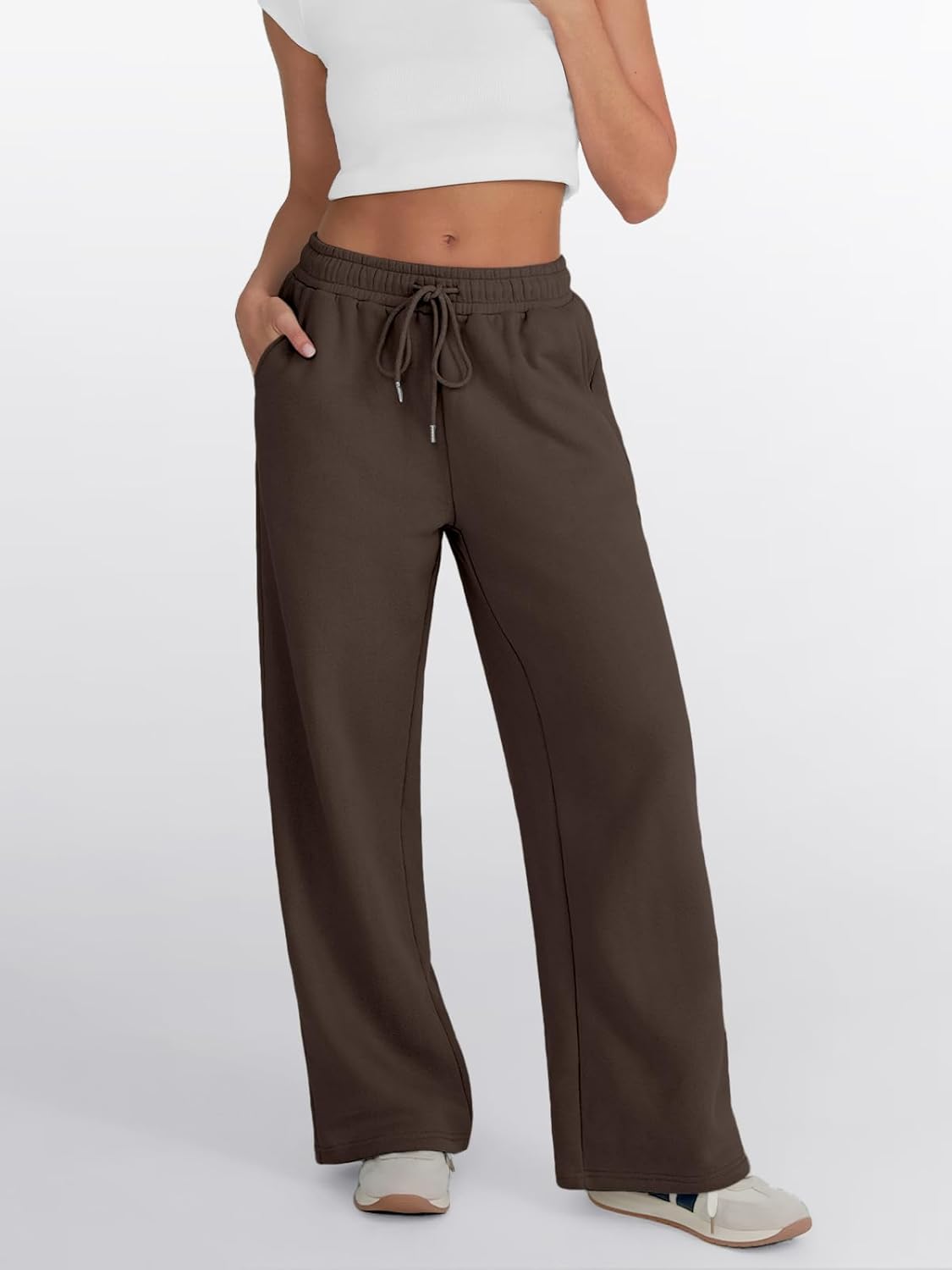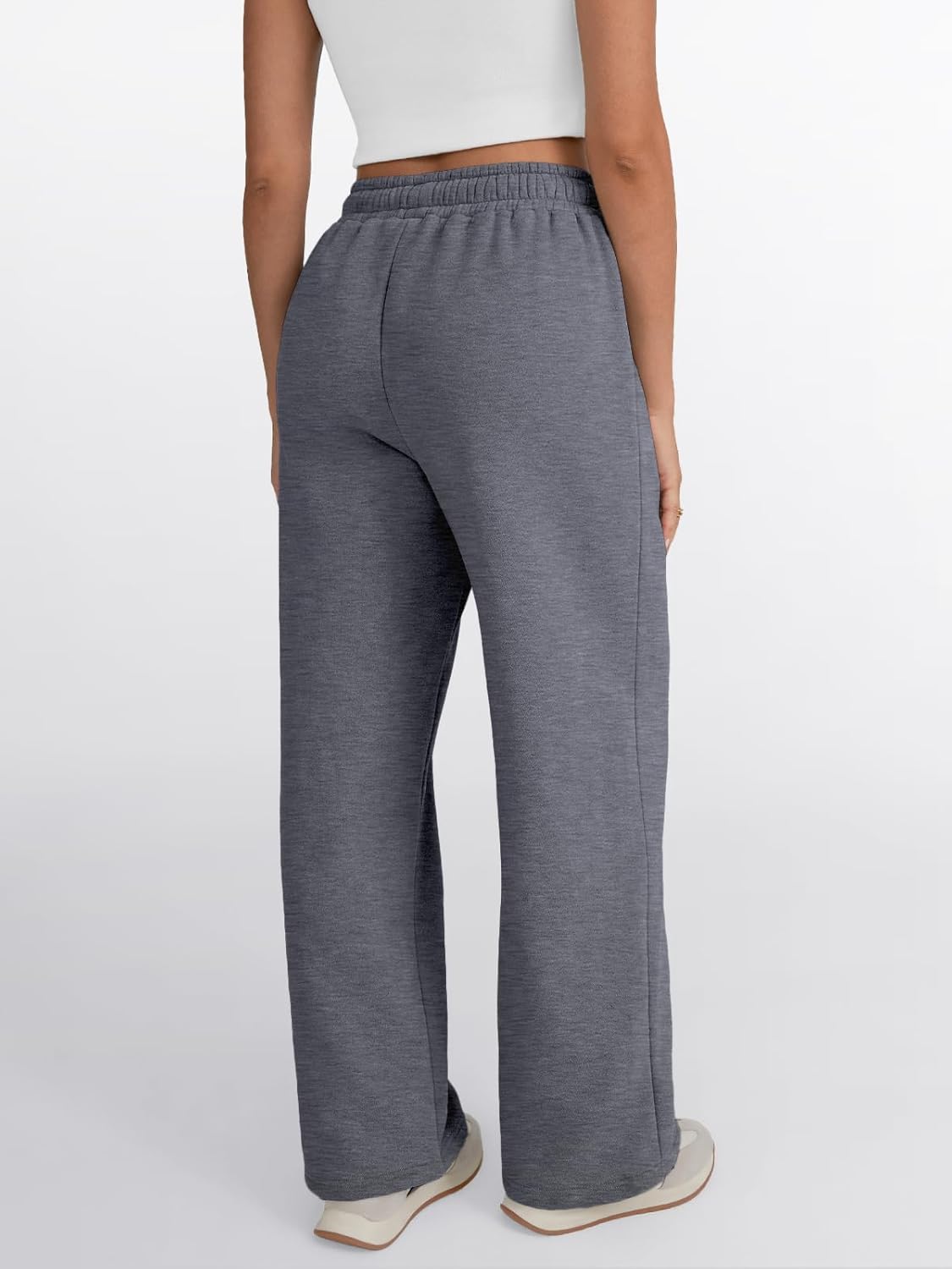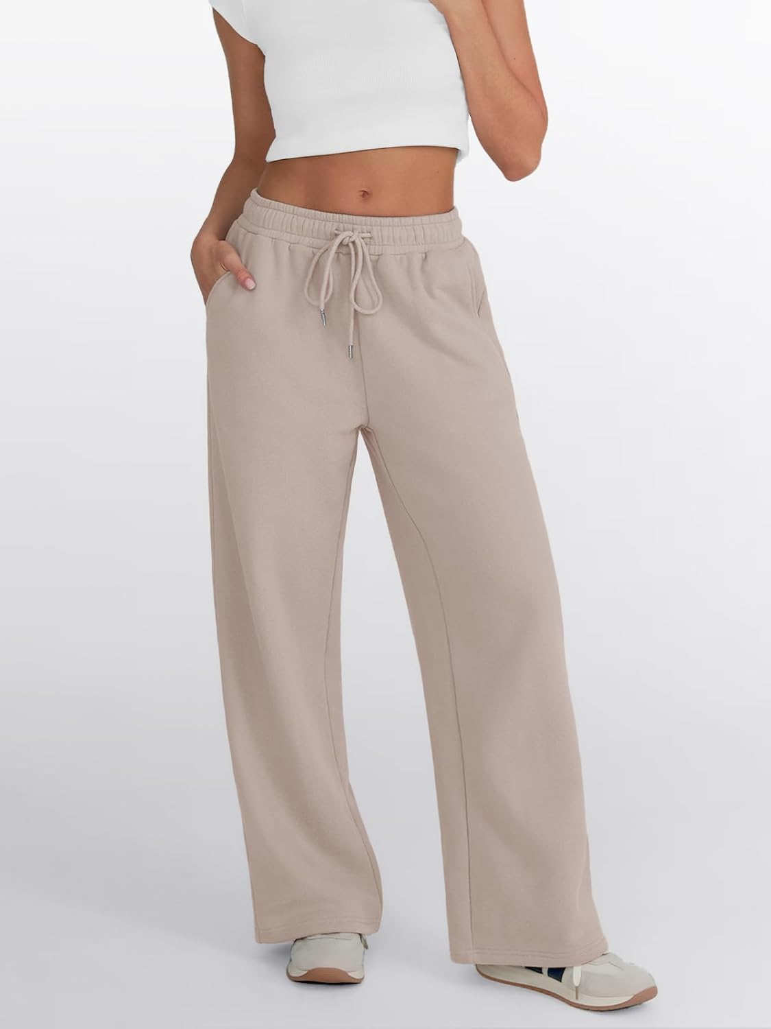 Trendy Queen - Pantalones deportivos de pierna ancha para mujer, pantalones holgados de cintura alta, con cordón, atléticos, acampanados, con bolsillos