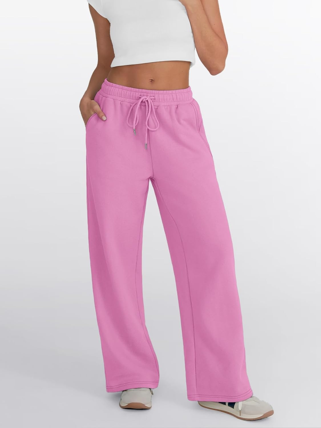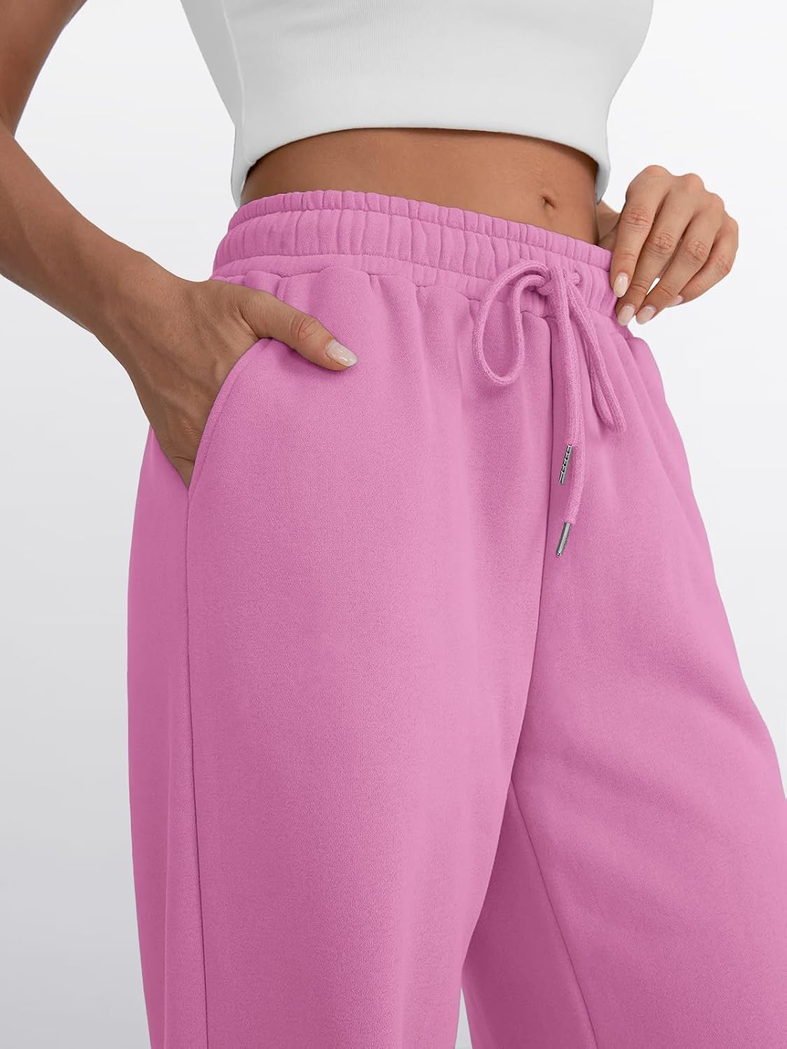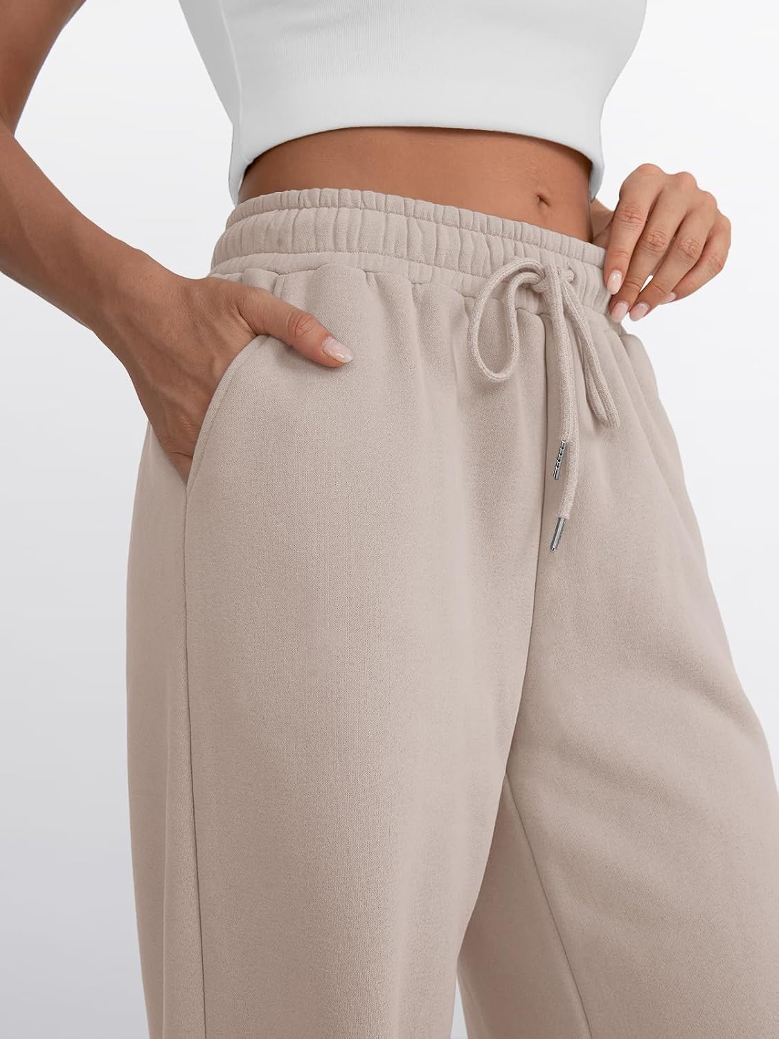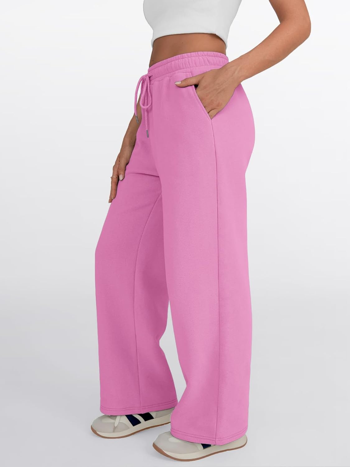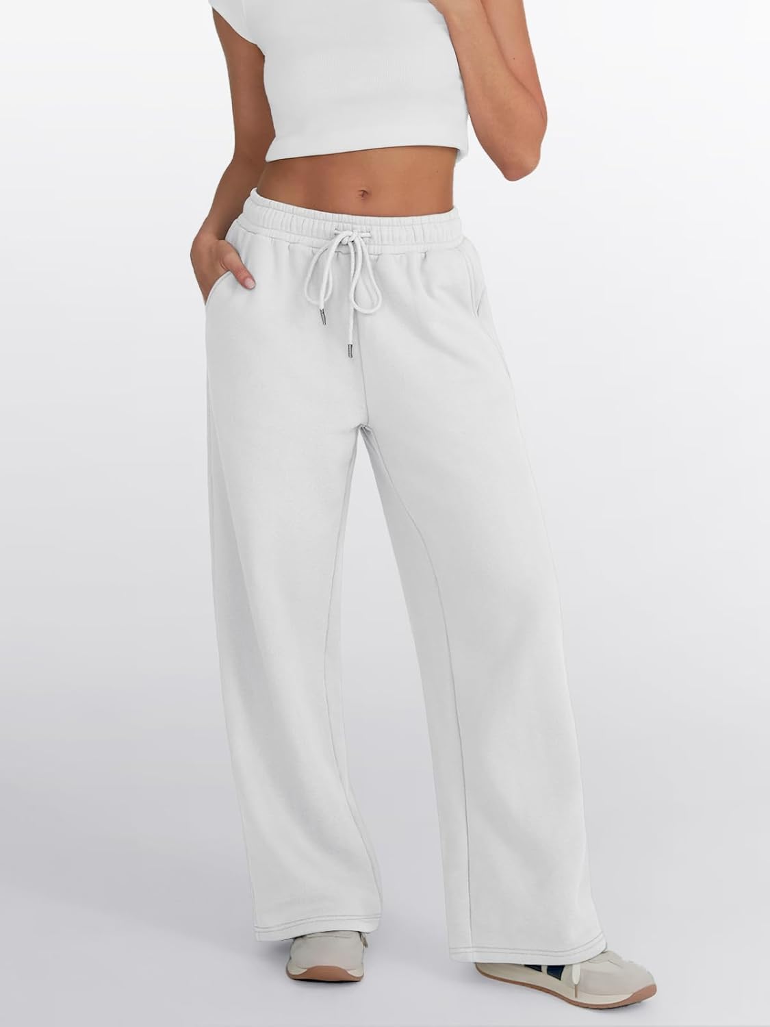 Trendy Queen - Pantalones deportivos de pierna ancha para mujer, pantalones holgados de cintura alta, con cordón, atléticos, acampanados, con bolsillos