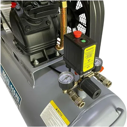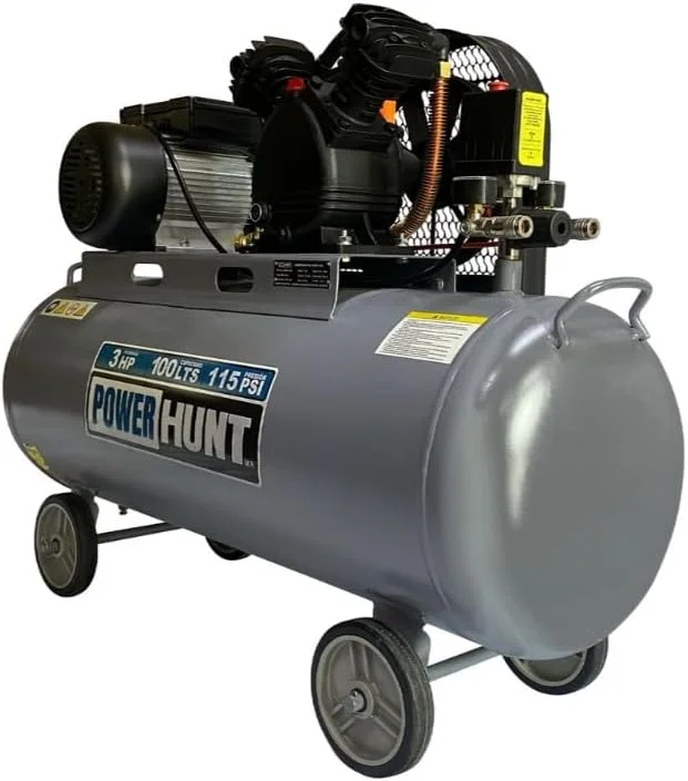 Compresor De Aire Eléctrico Portátil 100lts Power Hunt 3hp con banda y doble conexión rapida, presion de 8 bar/ 115 psi