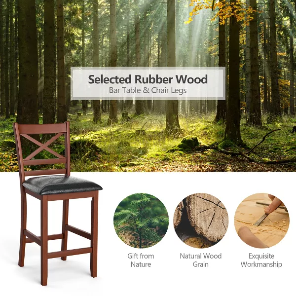 5 Pieces Bar Table Set: This set includes 1 bar table and 4 upholstered chairs, which is a perfect place for 4 people to gather for a meal. In addition, the counter height bar table set with vintage style fits any indoor decoration, making it suitable for residential places and commercial occasions.