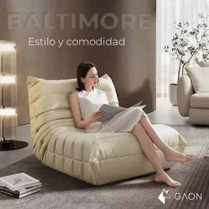 Comodidad optimizada Con un asiento a 43 cm de altura y un respaldo ajustable, el Sillón Baltimore ofrece el soporte perfecto para momentos de relajación. Su relleno de espuma de alta densidad asegura una experiencia cómoda y placentera.