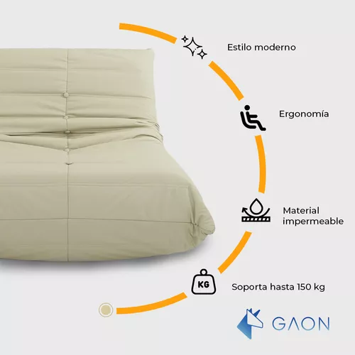 Dimensiones: 100 x 82 x 71 cm Materiales: Cuero sintético, madera, hierro y espuma Peso: 6.5 kg Colores disponibles: Beige y Gris Altura del asiento: 43 cm