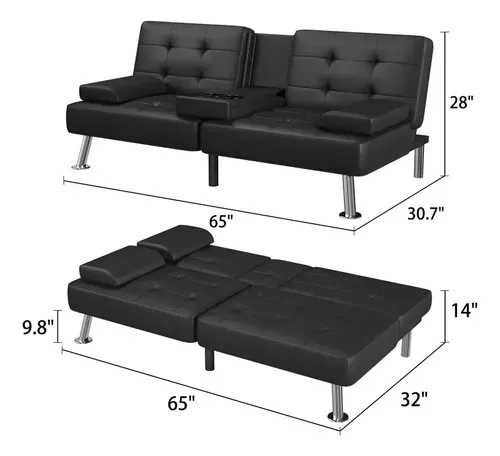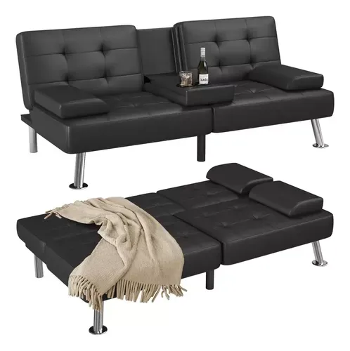Sillón Reclinable Sofá Cama Piel Sintética Negra Minimalista