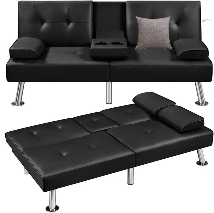 - 【Características fáciles de usar】Para facilidad de uso, este sofá convertible tiene una mesa desplegable con dos portavasos para guardar bebidas y aperitivos cuando disfrutas de tu tiempo última intervensión en él. Las dos almohadas ofrecen apoyo adicional para tu espalda baja o cabeza.